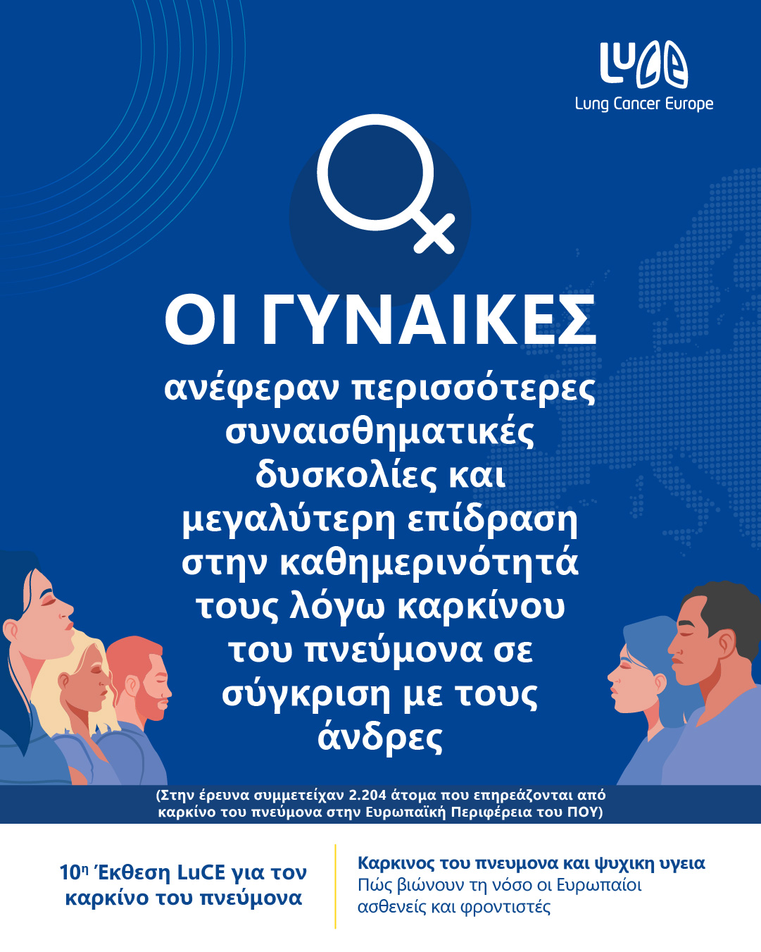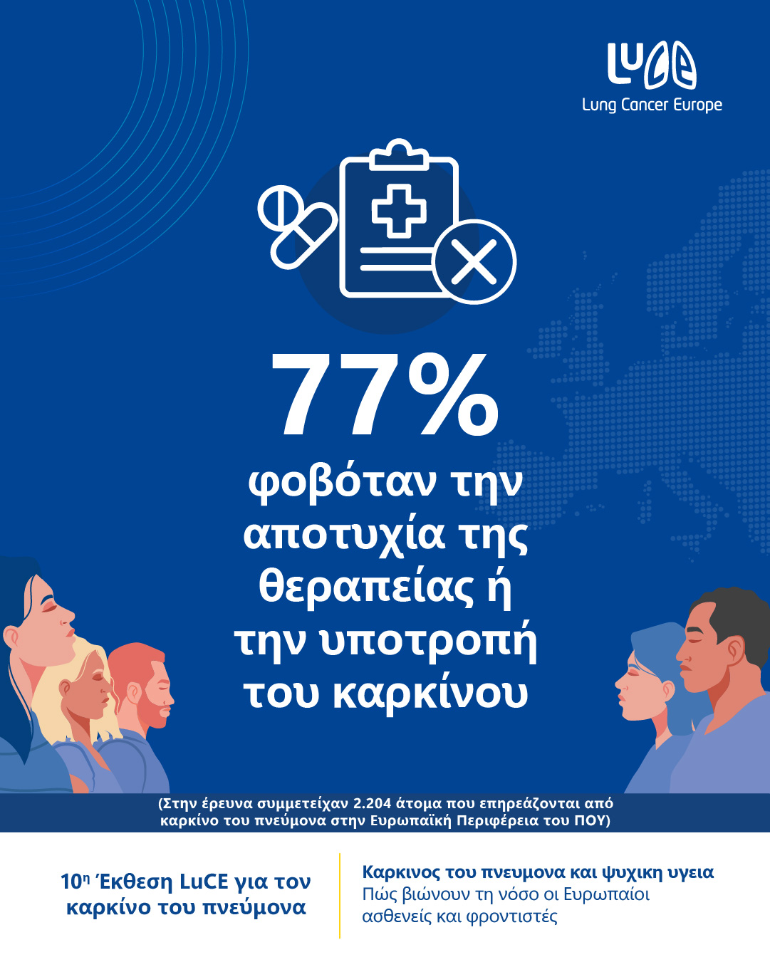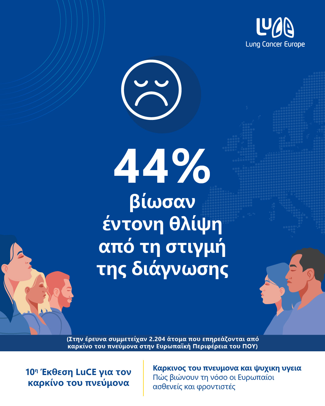 Ο οργανισμός Lung Cancer Europe (LuCE) και οι οργανισμοί-μέλη του παρουσιάζουν τη μεγαλύτερη διεθνή έρευνα που έχει διεξαχθεί έως σήμερα σχετικά με τον ψυχολογικό και συναισθηματικό αντίκτυπο του καρκίνου του πνεύμονα.