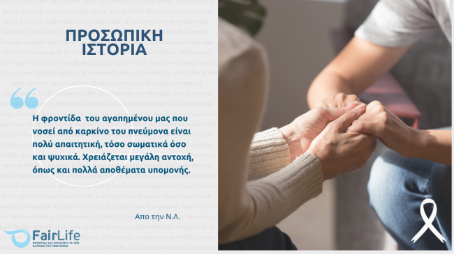 Από την Ν.Λ., Γυναίκα Φροντιστής Η εμπειρία μου με τον καρκίνο του πνεύμονα είχε σαν αφετηρία τον Νοέμβριο του 2020, όταν διαγνώστηκε ο πατέρας μου…