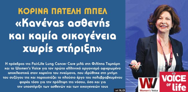 Η πρόεδρος της FairLife Lung Cancer Care μιλά στη Φιλίππα Ταμπάρη και το Women’s Voice για τον πρώτο ελληνικό οργανισμό αφιερωμένο αποκλειστικά στον καρκίνο του…