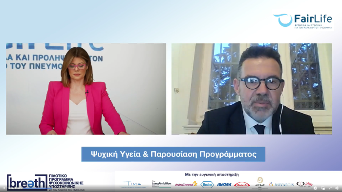 Την ανάγκη για ολιστική προσέγγιση των ασθενών με καρκίνο του πνεύμονα και για ενδυνάμωση της ψυχικής υγείας τόσο των ιδίων όσο και των οικογενειών και των φροντιστών τους, λόγω της συχνότητας εμφάνισης της νόσου καθώς και της επιβάρυνσης που επιφέρει στον ασθενή όσο και στους φροντιστές του επισήμαναν οι 21 ομιλητές της διαδικτυακής ενημερωτικής εκδήλωσης που διοργάνωσε η FairLife L.C.C. την Τετάρτη 1η Μαρτίου 2023. Το θέμα της εκδήλωσης αφορούσε στη σημασία της ψυχοκοινωνικής στήριξης των ασθενών με Καρκίνο του Πνεύμονα, των φροντιστών και του περιβάλλοντός τους στο πλαίσιο της παρουσίασης του πιλοτικού προγράμματος ψυχοκοινωνικής υποστήριξης BREATH. Το πρόγραμμα υλοποιείται από τη FairLife L.C.C., σε συνεργασία με εξειδικευμένους επαγγελματίες ψυχικής υγείας και παρέχεται πανελλαδικά δωρεάν στους ασθενείς με Καρκίνο, τους φροντιστές και το περιβάλλον τους. Tην εκδήλωση συντόνισε η δημοσιογράφος Χριστίνα Βίδου.