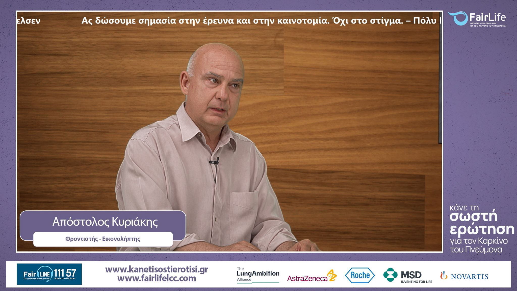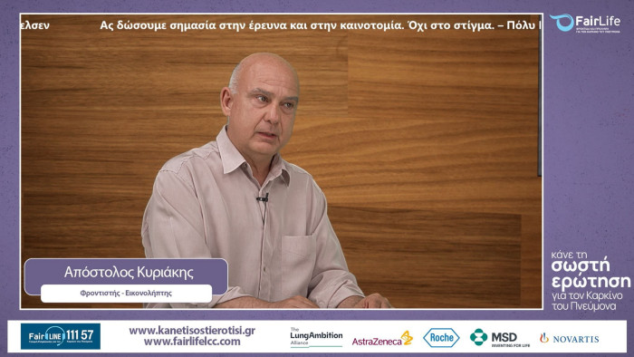 “Πλάνο ζωής“ ζήτησε ο κύριος Αδαμάντιος Μαντής, Φυσιοθεραπευτής και ασθενής με καρκίνο του πνεύμονα, για να αντιμετωπίσει τις προκλήσεις της νόσου. Ο κύριος Μαντής μίλησε για την προσωπική του εμπειρία, για τις ενοχές και τις τύψεις του, για το στίγμα που καθυστέρησε τη διάγνωσή του, καθώς και την αναζήτηση ψυχολογικής βοήθειας. “Ο καρκίνος του πνεύμονα είναι ένας αγώνας δρόμου που μπορείς να τον διανύσεις καλύτερα, όταν σου κρατούν το χέρι. Αυτό το χέρι σου φωτίζει τον δρόμο μέσα από το σκοτάδι.“