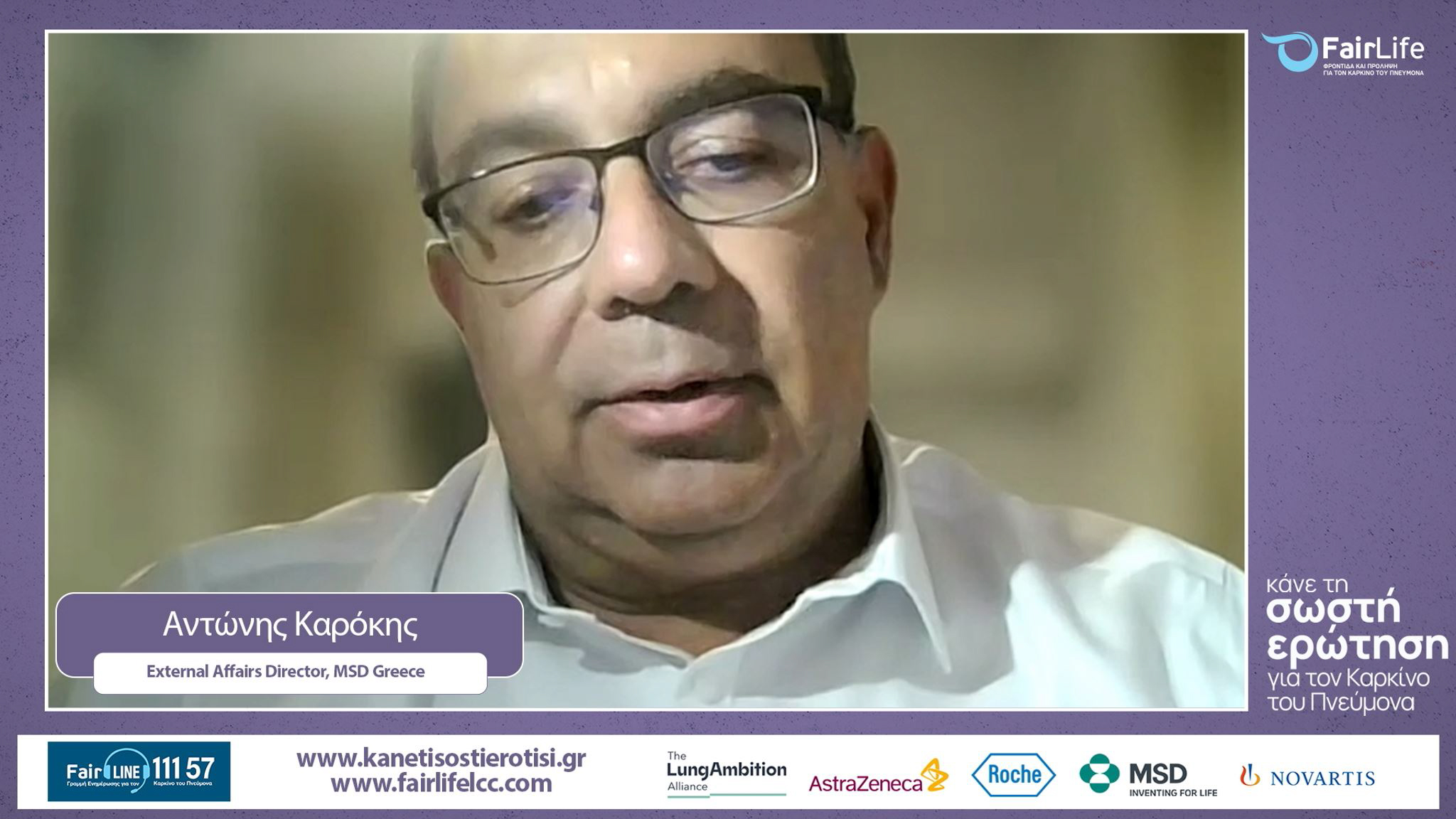 Την ανάγκη της αντιμετώπισης των κοινωνικοοικονομικών ανισοτήτων στο θέμα της υγείας, υποστήριξε ο κύριος Αντώνης Καρόκης, External Affairs Director, MSD Greece, αναφέροντας πως η συζήτηση για τη Δημόσια Υγεία συμπεραίνει πως οι βλαβερές συνήθειες, όπως το κάπνισμα, συχνά δεν είναι ατομικές, αλλά κοινωνικά προσδιορισμένες αποφάσεις. Ο κύριος Καρόκης τόνισε τη μοναδικότητα κάθε ασθενή και τη σημασία της εξατομικευμένης προσέγγισης των ανθρώπων που νοσούν.