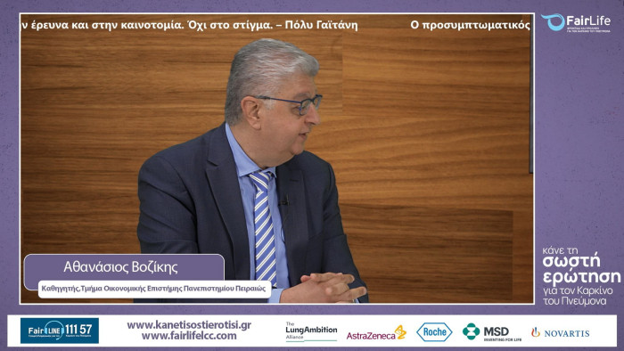 Πρόσβαση σε όλους και ολοκληρωμένη ογκολογική φροντίδα για τους ασθενείς με καρκίνο του πνεύμονα ζήτησε ο κύριος Αθανάσιος Βοζίκης, Καθηγητής, Τμήμα Οικονομικής Επιστήμης, Πανεπιστήμιο Πειραιώς. Ο κύριος Βοζίκης παρουσίασε στατιστικά στοιχεία για το πώς εξελίσσεται ο καρκίνος του πνεύμονα στην Ελλάδα, μιλώντας και για τη μεταβολή της ηλικιακής πυραμίδας με τη γήρανση του πληθυσμού, η οποία συμβάλλει στην αύξηση των διαγνώσεων. Εμφανίστηκε αισιόδοξος για τη δυνατότητα που έχουμε ως χώρα να βελτιώσουμε τα στατιστικά με κοινή και συντονισμένη προσπάθεια.