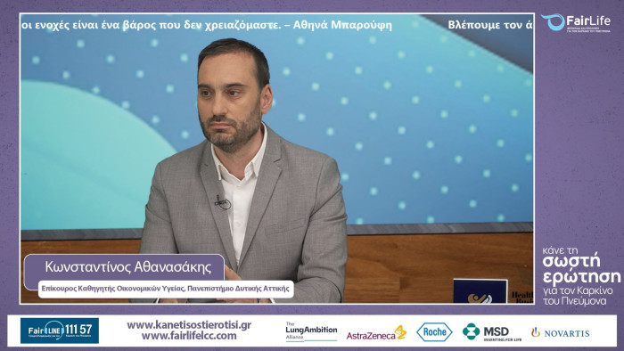 “Το στίγμα του καρκίνου του πνεύμονα δεν συνάδει με ένα συμπεριληπτικό σύστημα Δημόσιας Υγείας. Το ερώτημα “Καπνίζατε;“ αντιστοιχεί σε μια συζήτηση εξαιρετικά αναχρονιστική, που έχει απορριφθεί από τη διεθνή βιβλιογραφία. Αντ’ αυτού ρωτάμε “Τι χρειάζεστε;“ τόνισε ο κύριος Κωνσταντίνος Αθανασάκης, Επίκουρος Καθηγητής Οικονομικών Υγείας, Πανεπιστήμιο Δυτικής Αττικής. Ο κύριος Αθανασάκης μίλησε για την ανάγκη ολοκληρωμένης φροντίδας πέρα από την πρόσβαση σε φαρμακευτική αγωγή, που περιλαμβάνει την έγκαιρη πρόσβαση σε θεραπεία και στον έλεγχο και αποζημίωση των βιοδεικτών για όλους, ως ζήτημα ισότητας.
