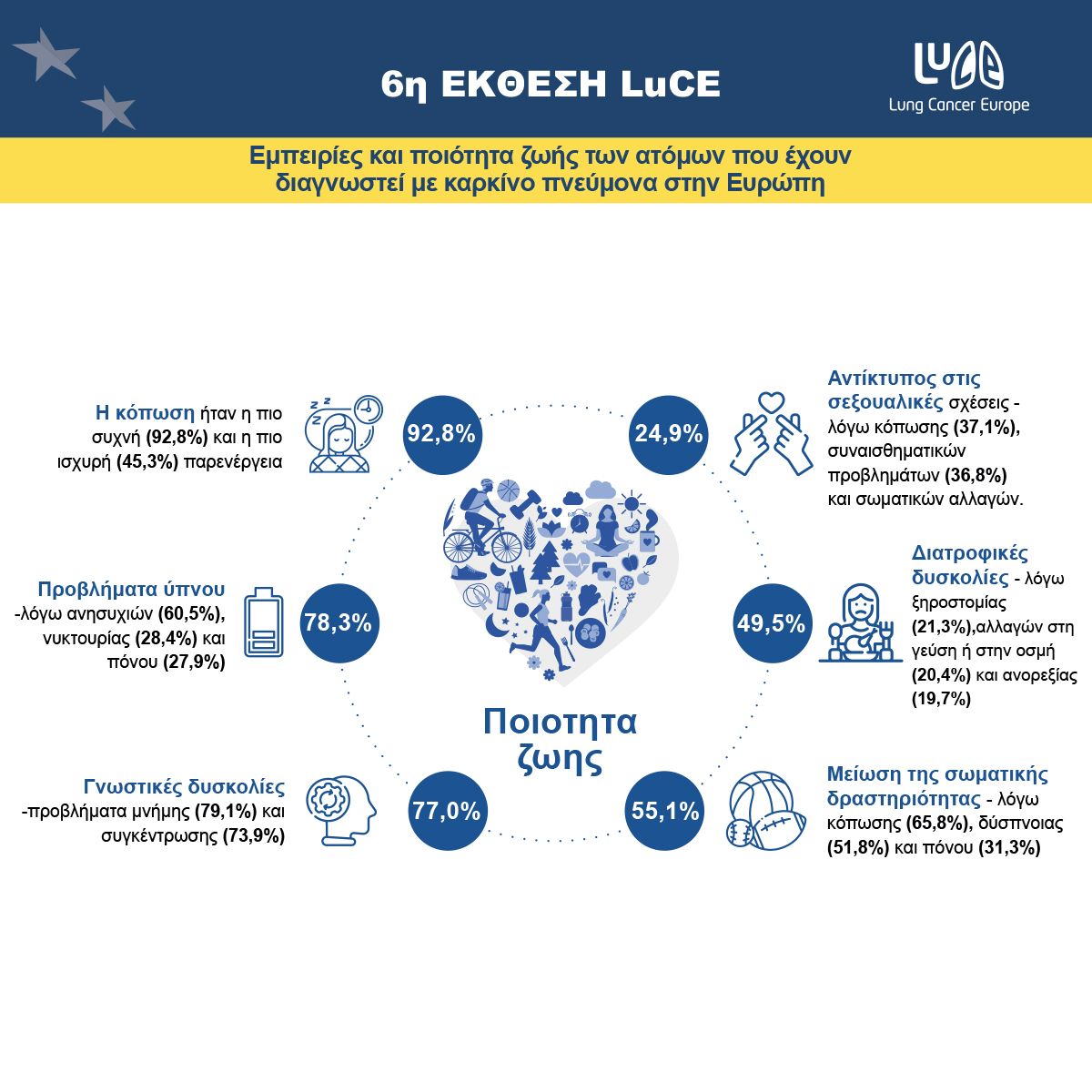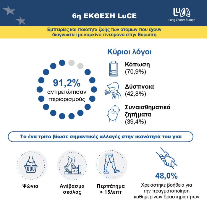 Περισσότερες πληροφορίες μπορείτε να βρείτε εδώ στην ιστοσελίδα https://www.lungcancereurope.eu/2021/09/21/6th-edition-of-the-luce-report-survivorship-and-quality-of-life-of-people-impacted-by-lung-cancer-in-europe/