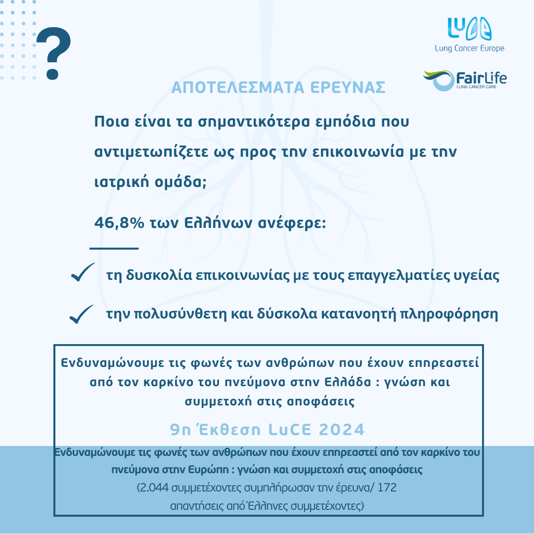 – Το 46,8% ανέφερε ανεπαρκή επικοινωνία με την ιατρική ομάδα, με σημαντικότερα εμπόδια: