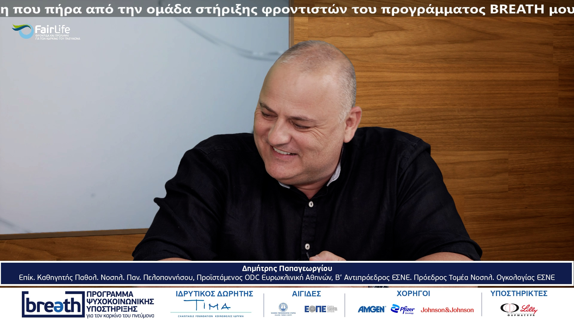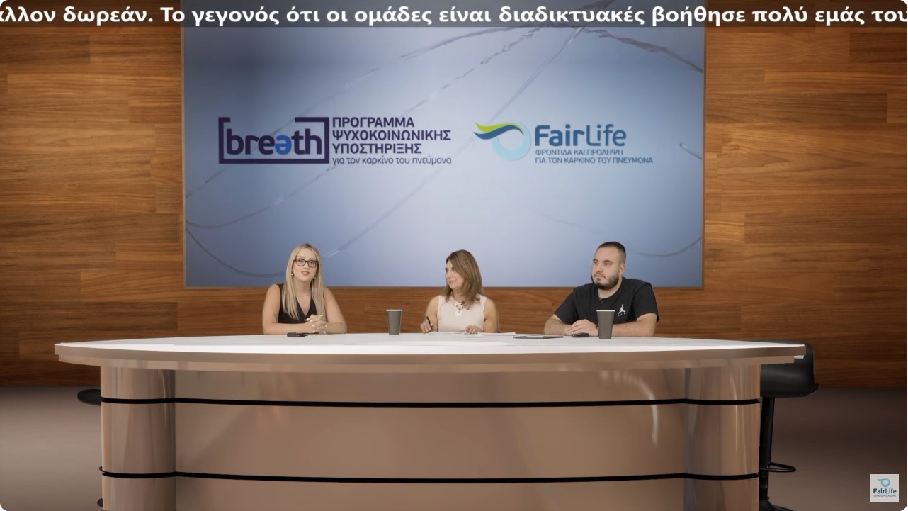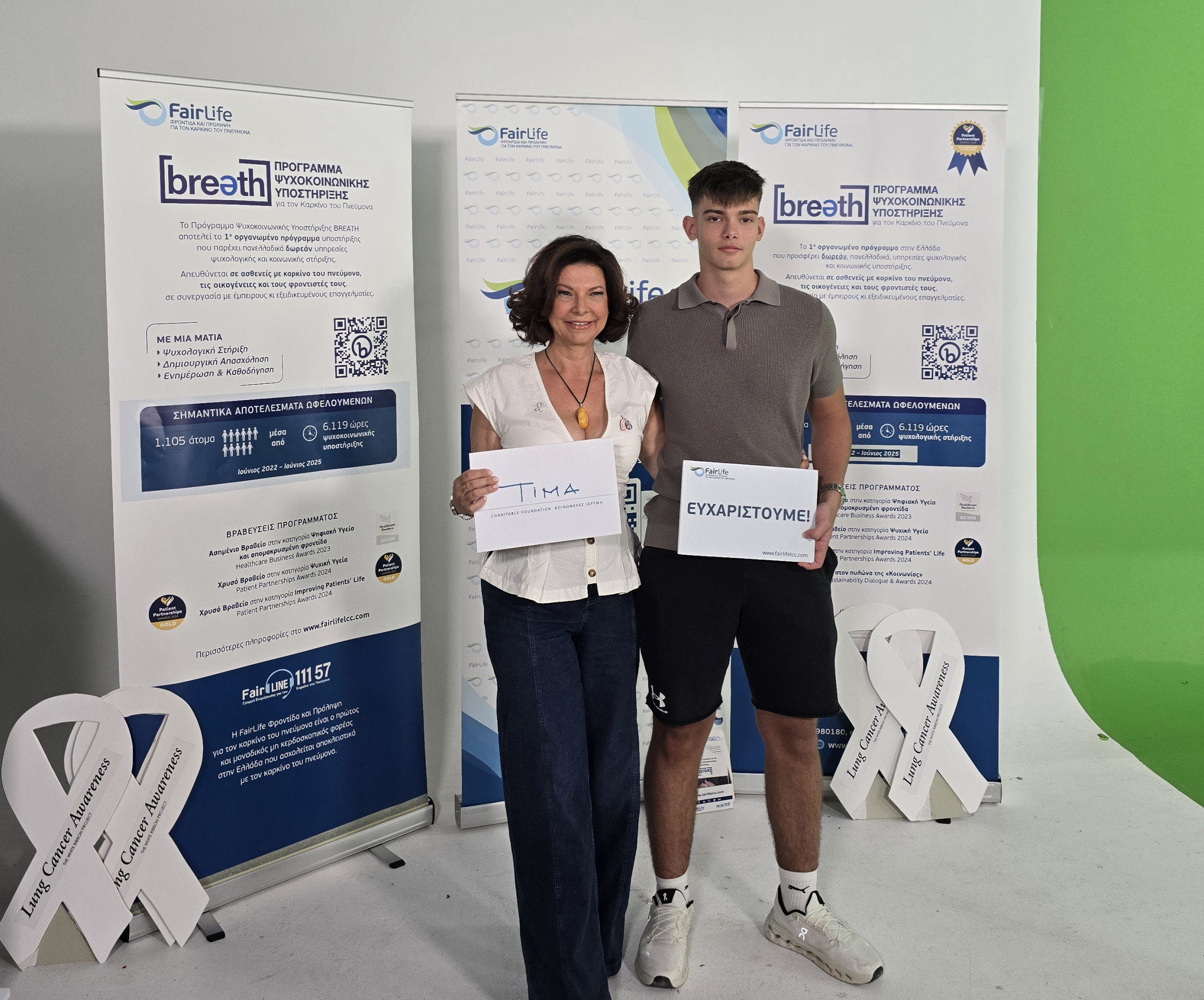 Mr. Paul Kidner, Advisor to the Tima Foundation, emphasized the significance of supporting FairLife L.C.C.’s BREATH program for a 3rd consecutive year, noting the vital support it provides to individuals living with lung cancer — the deadliest and often most “invisible” form of cancer. As he stated, BREATH is a comprehensive intervention that fills the gap in information and psychosocial care for patients, caregivers and families. Mr. Kidner recognized the contribution of FairLife L.C.C. in highlighting the importance of human contact and empowerment, alongside medical treatment and referred to the consistent presence of TIMA Charitable Foundation in the field of social contribution.