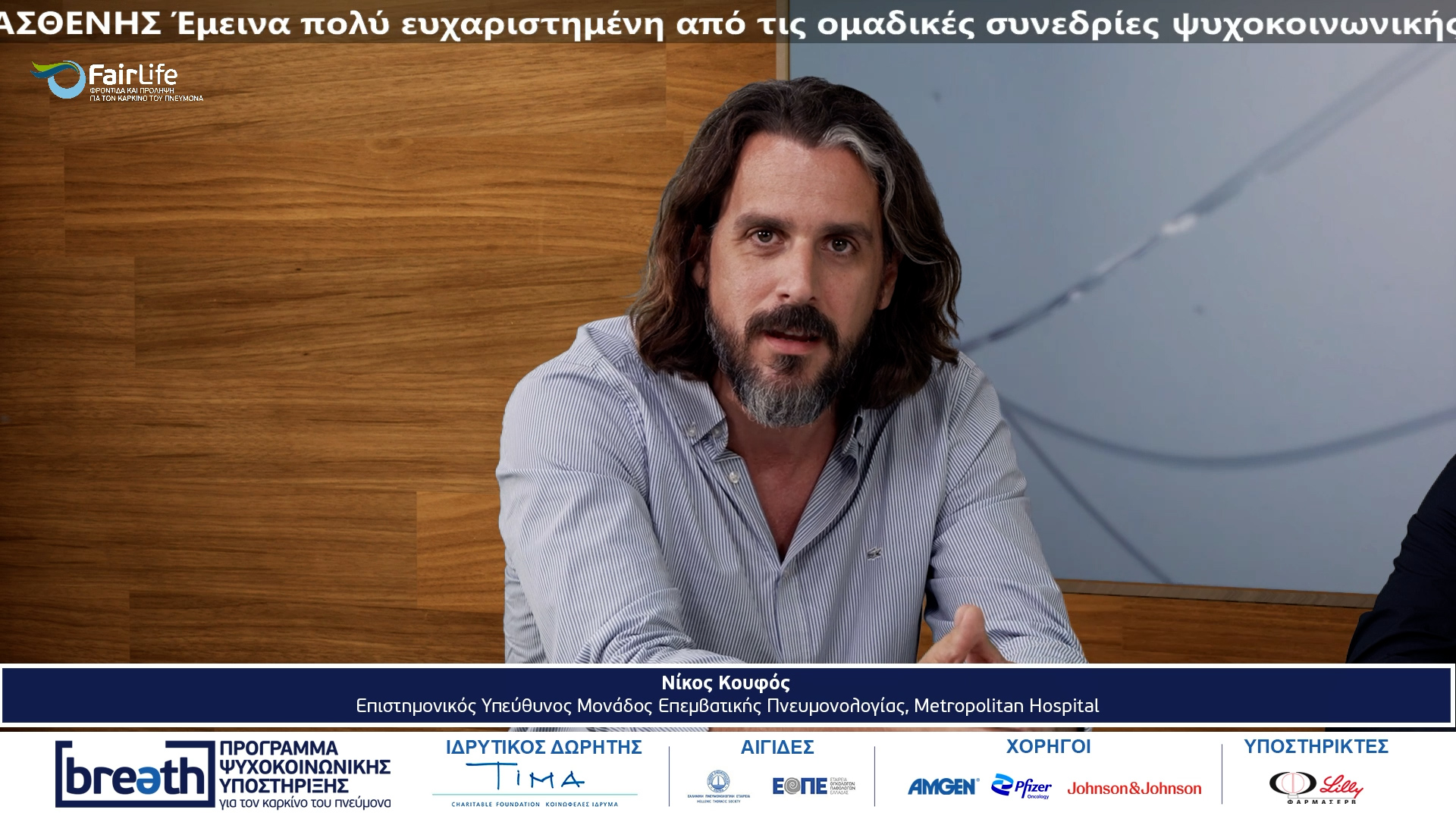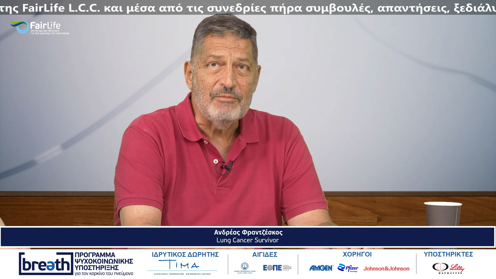 “For me personally, FairLife L.C.C. and the BREATH program are a turning point in my life,” emphasized Mr. Andreas Frantzeskos, Lung Cancer Survivor, speaking about his journey after diagnosis, the numerous chemotherapies despite being positive for the ALK mutation, the second medical opinion and the targeted molecular therapy that changed his life. He emphasized the value of proper information, seeking specialized doctors, but also emotional support, both from family and from groups of people with common experiences. Mr. Frantzeskos called on every patient to seek help, emphasizing that cancer is not a taboo, but a demanding – but not invincible – disease.