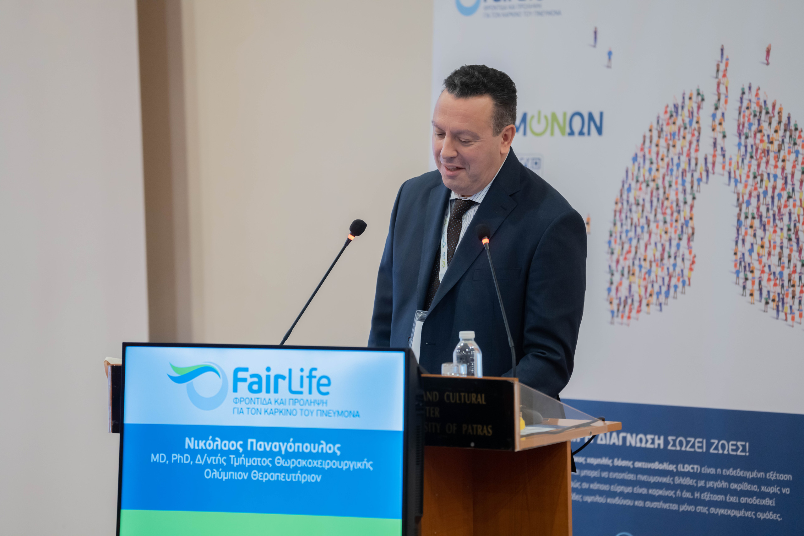 The event was coordinated by Mr. Argyris Tzouvelekis, Professor of Pathology-Pulmonology, Department of Medicine, University of Patras. Mr. Tzouvelekis, in his preface to the opening of the proceedings, pointed out the high mortality rate of lung cancer, the leading cancer in deaths, noting: “Today’s conference aims to raise concerns but at the same time give us hope that better days are coming… Lung cancer is a new pandemic and this is exactly what we came to address today, to start laying the groundwork, increase awareness and to inform the public about lung cancer screening…”