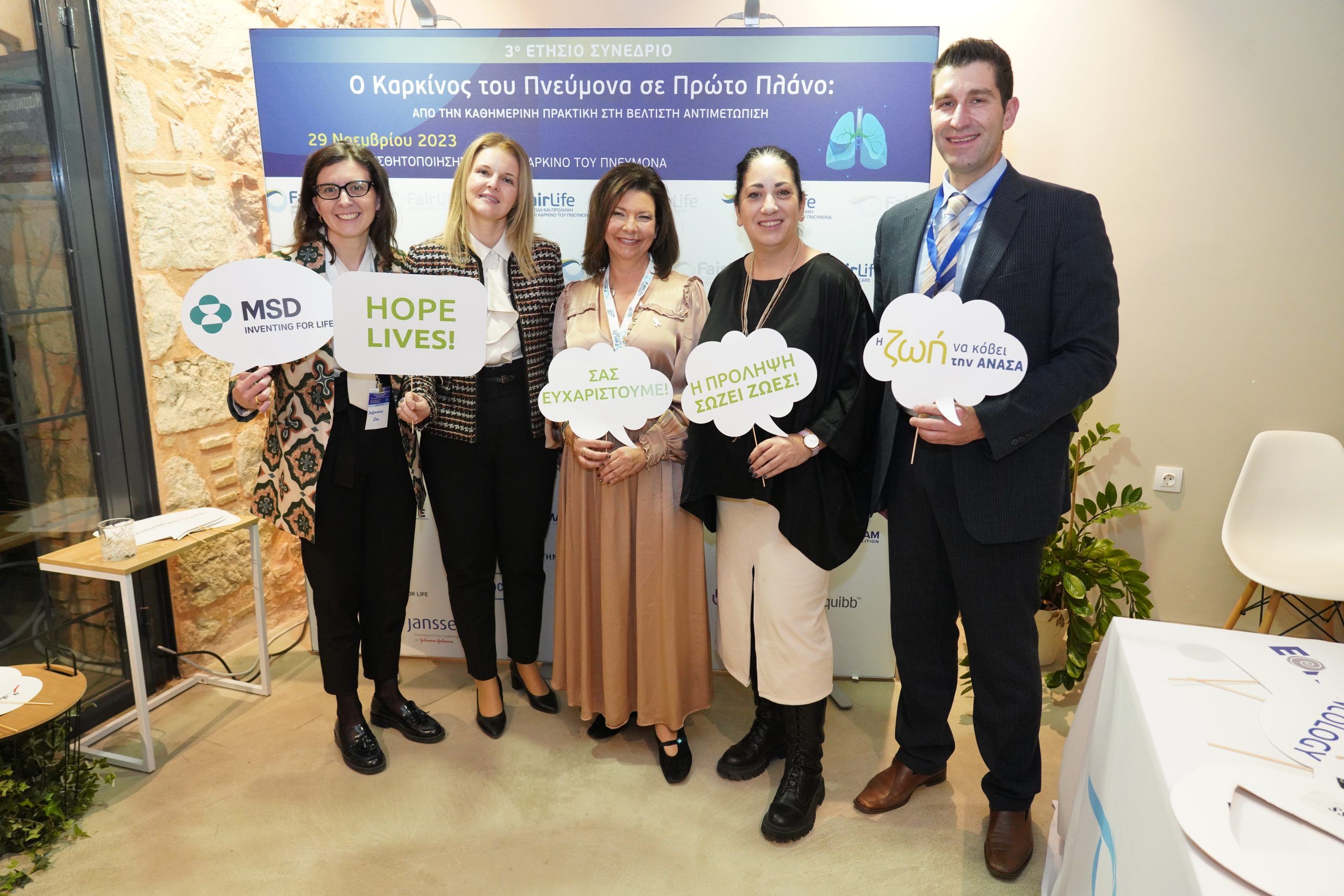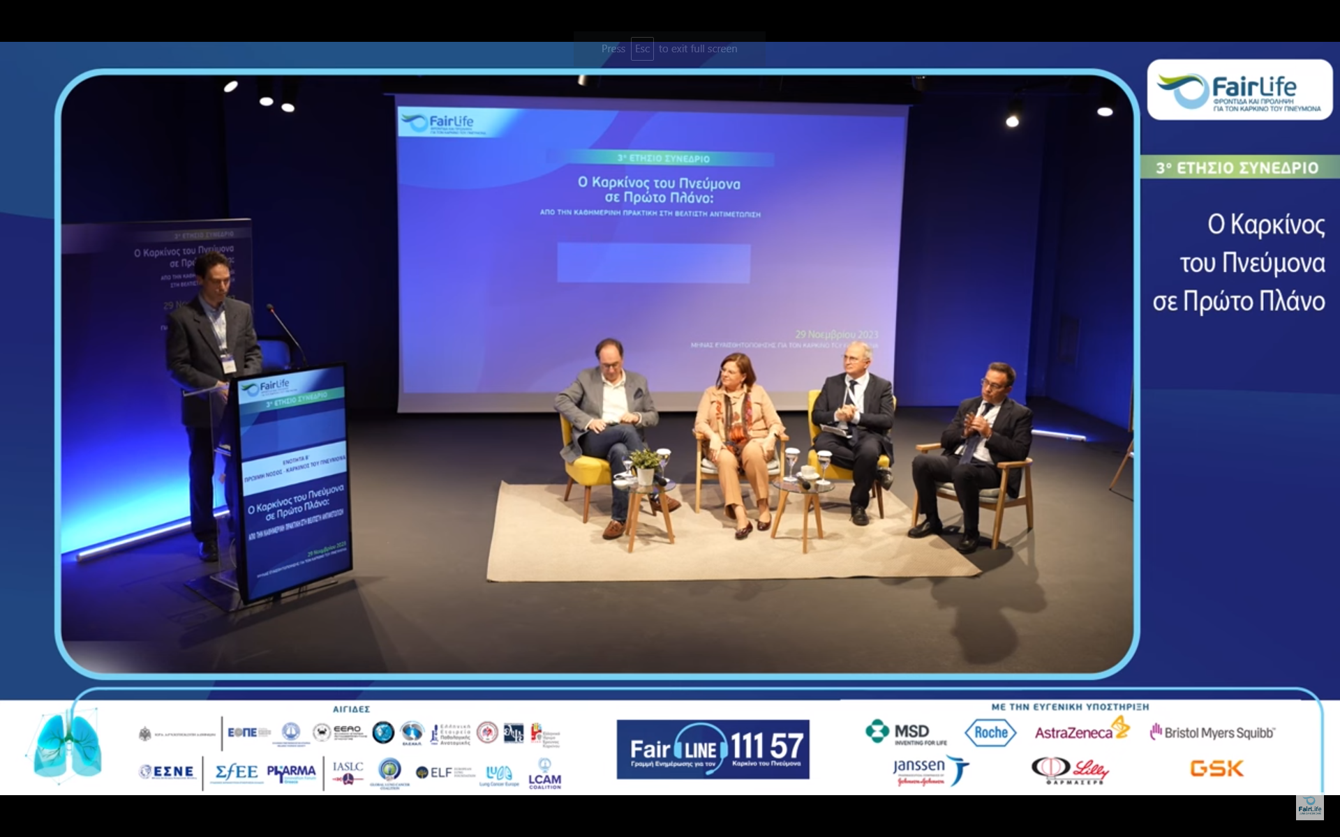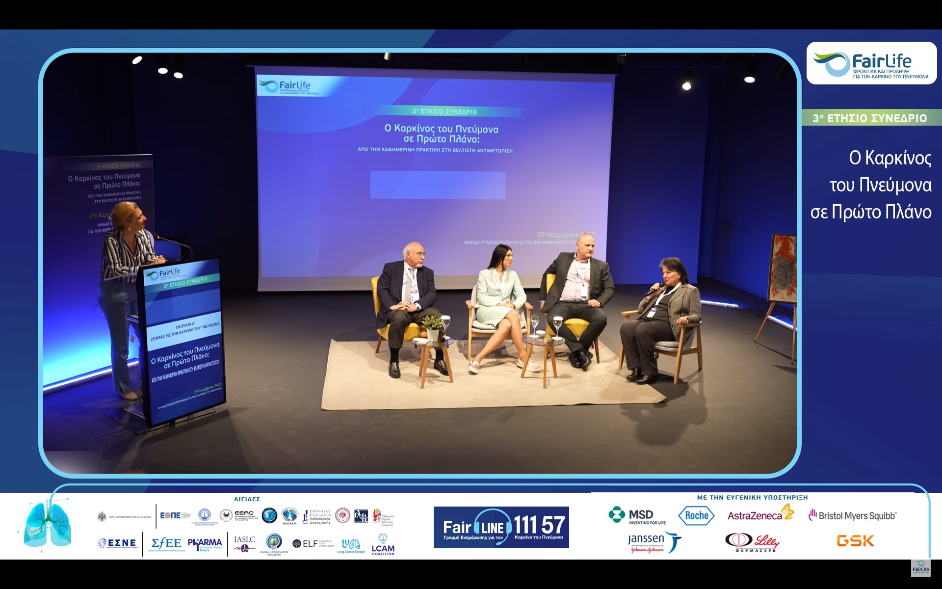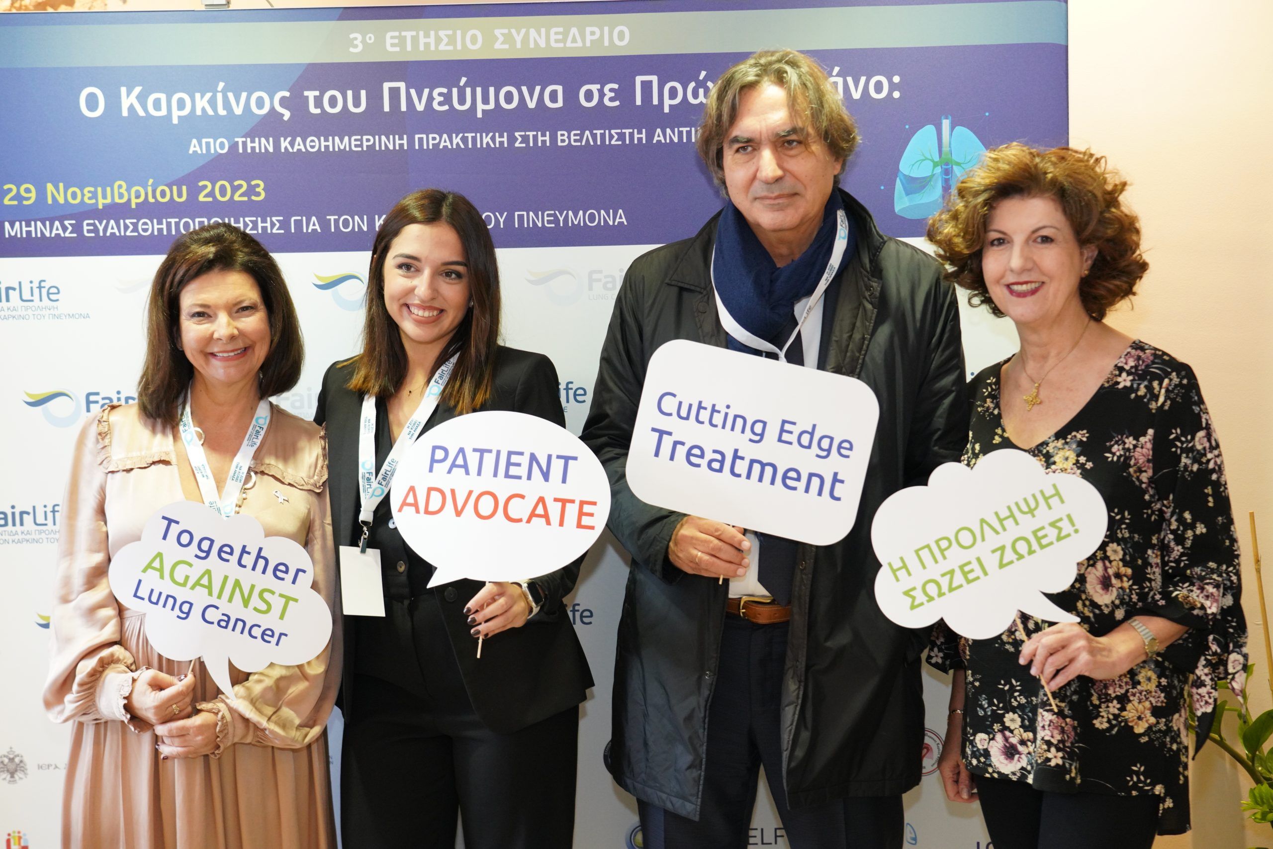 Απαντήσεις για τη σημασία της πρόληψης και της έγκαιρης διάγνωσης του καρκίνου του πνεύμονα, τη διαδικασία της διάγνωσης στην πρώιμη και μεταστατική νόσο, τις υποστηρικτικές θεραπείες καθώς και το στίγμα του καπνίσματος που «συνοδεύει» τους ανθρώπους που βιώνουν την ασθένεια έδωσαν οι 53 ομιλητές και σχολιαστές από την Ελλάδα και το εξωτερικό, (εκπρόσωποι φορέων από την επιστημονική, ακαδημαϊκή και ερευνητική κοινότητα της Ελλάδας και του εξωτερικού, εκπρόσωποι της Εκκλησίας της Ελλάδος και της Ελληνικής Πολιτείας αλλά και των ασθενών καθώς και στελέχη της φαρμακοβιομηχανίας) κατά τη διάρκεια του 3ου ετήσιου συνεδρίου της FairLife Φροντίδα και πρόληψη για τον καρκίνο του πνεύμονα, με τίτλο: «Ο καρκίνος του πνεύμονα σε πρώτο πλάνο – από την καθημερινή πρακτική στη βέλτιστη αντιμετώπιση».