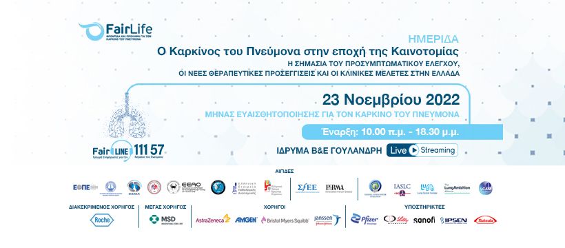 Aναλυτικές πληροφορίες για την ημερίδα: https://fairlifelcc.com/o-karkinos-toy-pneymona-stin-epochi-tis-kainotomias/