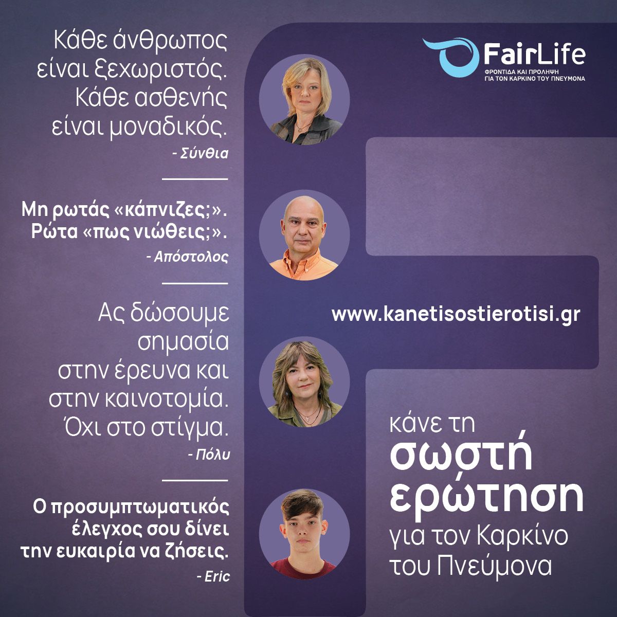 Η καμπάνια ευαισθητοποίησης της FairLife L.C.C. υλοποιείται με την  ευγενική υποστήριξη των: Lung Ambition Alliance-AstraZeneca, Roche, MSD, ΦΑΡΜΑΣΕΡΒ-ΛΙΛΛΥ ΑΕΒΕ.