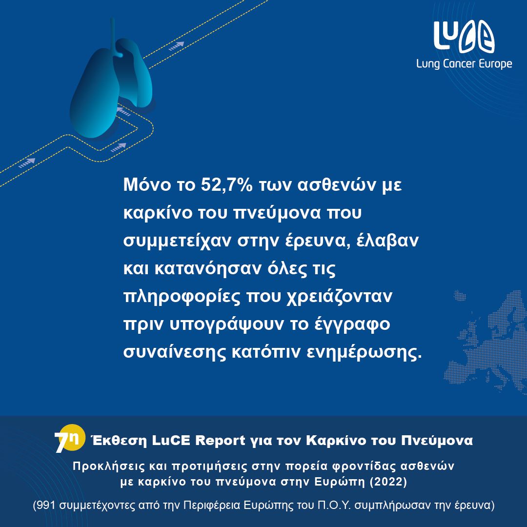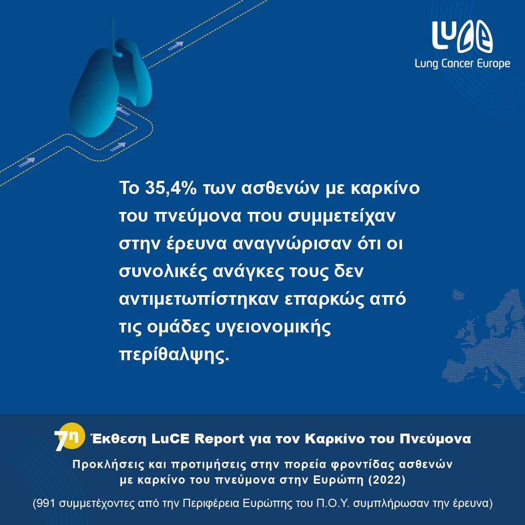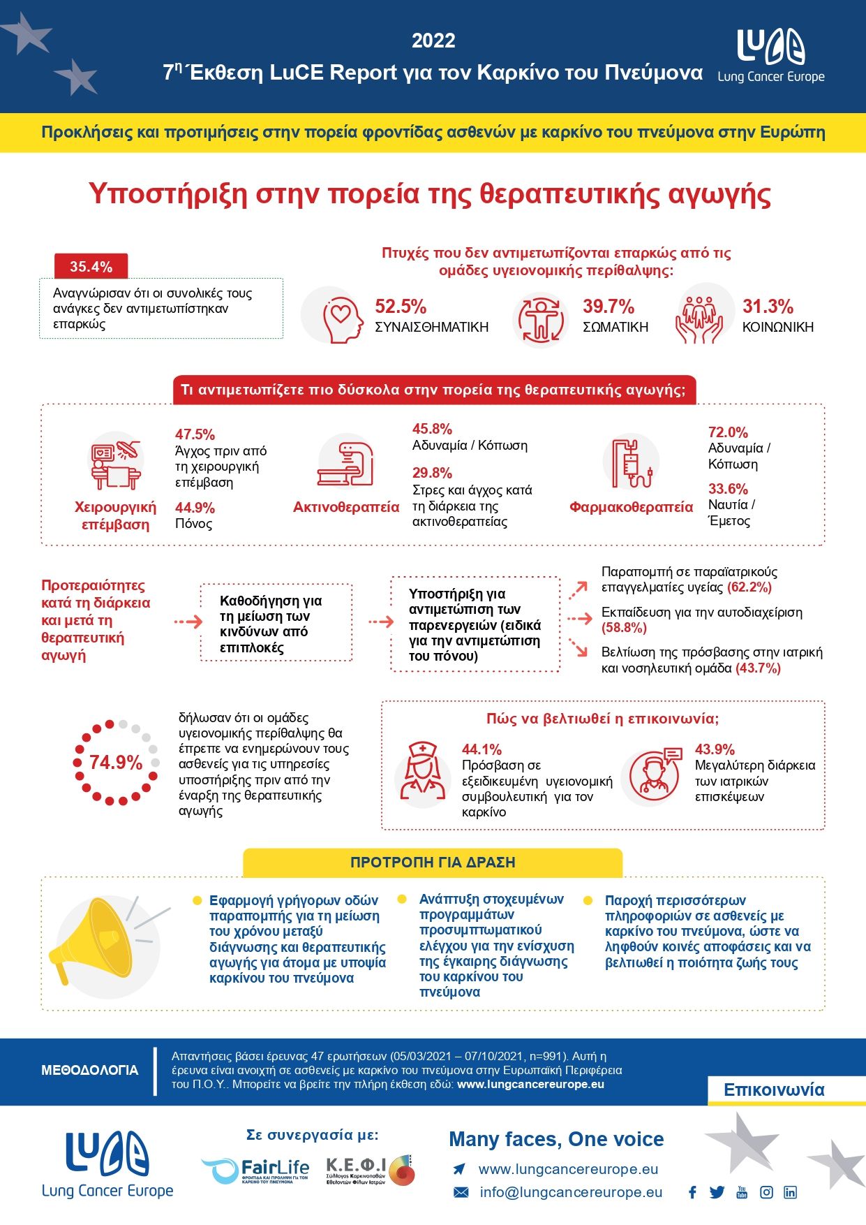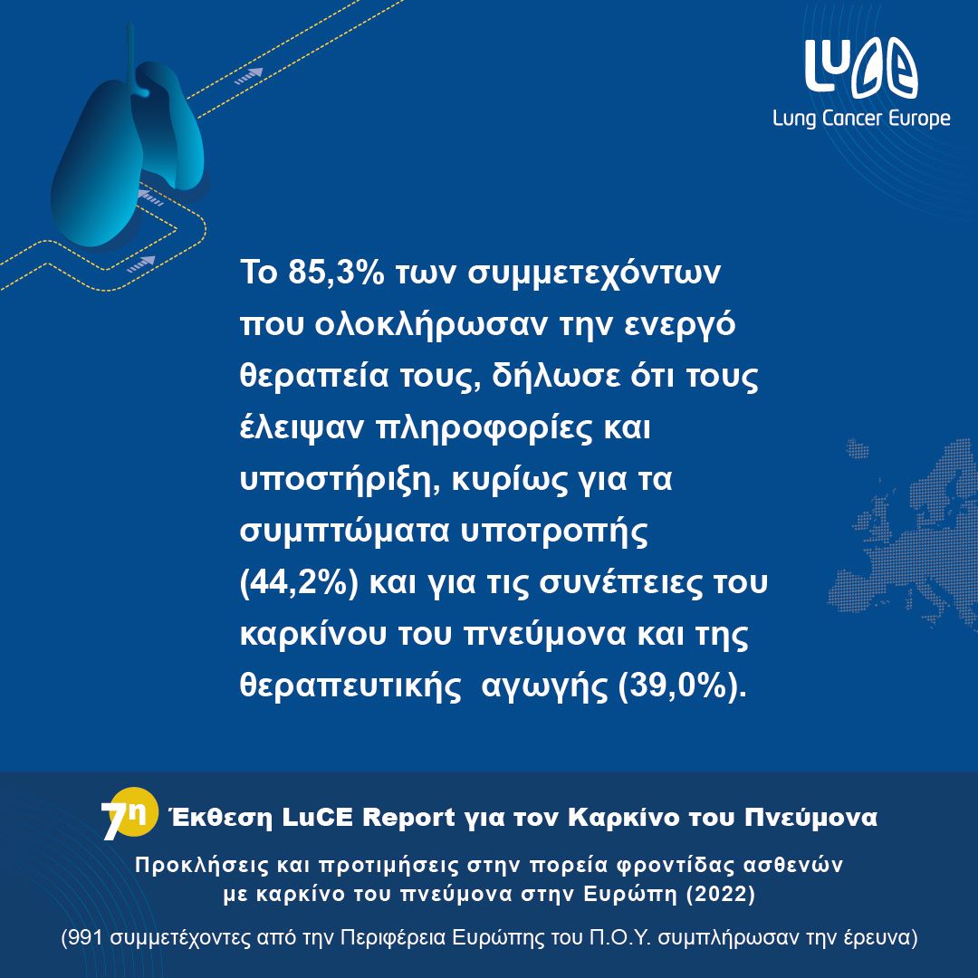 1 Δεκεμβρίου 2022. Ο Ευρωπαϊκός Οργανισμός για τον Καρκίνο του Πνεύμονα (LuCE) εξέδωσε την 7η έκδοση της Έκθεσης LuCE Report. Πρόκειται για μια ετήσια πρωτοβουλία,της οποίας ηγούνται οργανώσεις ασθενών με καρκίνο του πνεύμονα, σε ολόκληρη την Ευρώπη, με σκοπό την ευαισθητοποίηση σχετικά με τις κύριες προκλήσεις που αντιμετωπίζουν τα άτομα που πλήττονται από αυτήν τη νόσο.