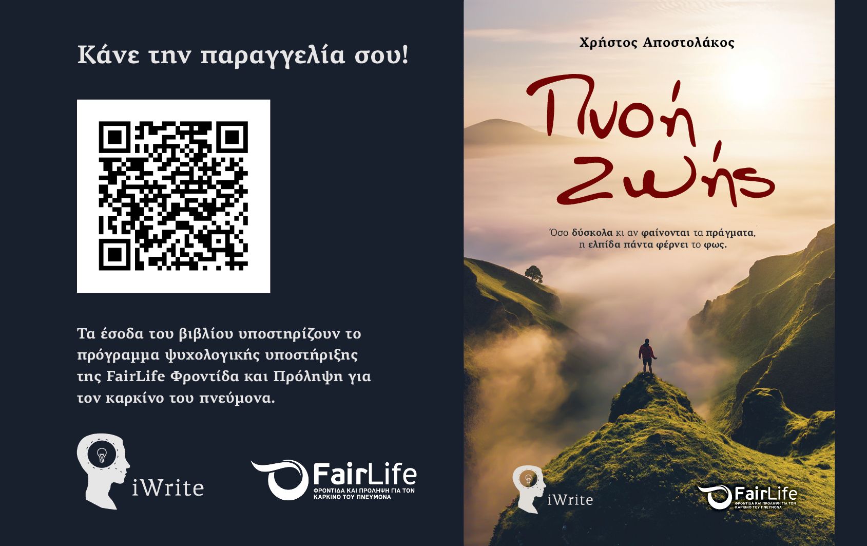 Η FairLife LC.C. στηρίζει την έκδοση και παρουσιάζει με ιδιαίτερη χαρά το νέο βιβλίο με τίτλο “Πνοή Ζωής“ του φίλου και υποστηρικτή του φορέα, Χρήστου Αποστολάκου, από τις εκδόσεις iWrite.