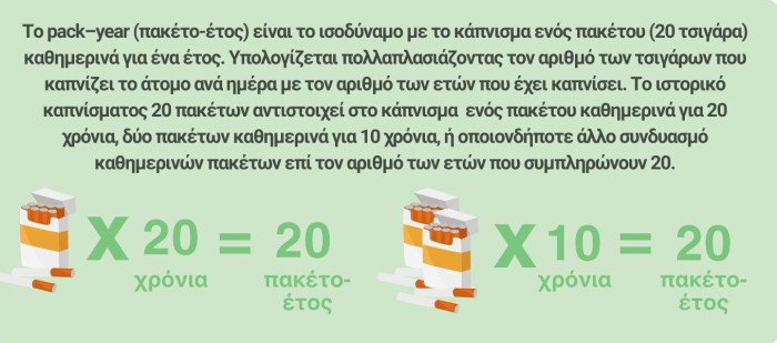 Ιστορικό καπνίσματος: 20 πακέτα-έτη (pack-years):